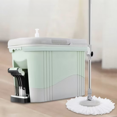 This mop set includes a sturdy plastic bucket, stainless steel wringer, and an absorbent microfiber mop head. The spin system uses a smooth pedal mechanism, so you stay in control without splashing water around. The microfiber head picks up dust, hair, and spills easily—making it ideal for tiles, marble, wood floors, and more. Plus, the mop handle is adjustable, so anyone in the house can use it comfortably.